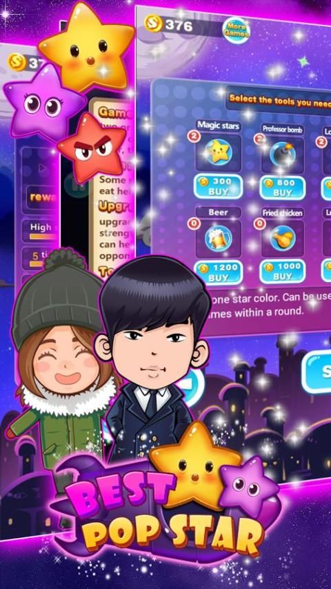 Permainan ini terdiri dari 5 warna yang berbeda dari bintang-bintang secara acak disusun menjadi 10 * 10 matriks. Bersama-sama dengan dua atau lebih dari dua bintang, Anda dapat mengklik pada pilihan, pilih lagi setelah itu akan dihilangkan. Penghapusan jumlah bintang, semakin tinggi skor. Pada saat yang sama, karakter serangan juga akan tinggi. Apa yang Anda tunggu, bintang api!