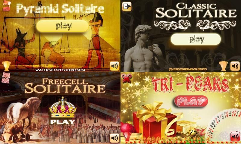 Koleksi ini mencakup 4 Solitaire permainan yang berbeda: Pyramid, Klondike, Freecell, Tripeaks