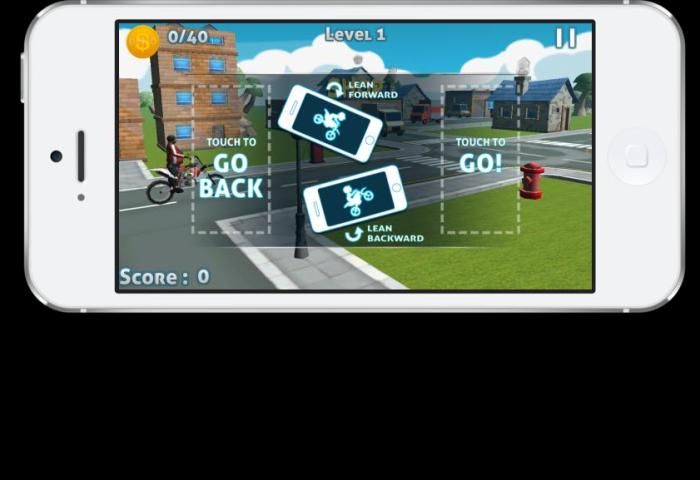 - Sederhana untuk Gunakan Kontrol (Sentuh kiri Pojok perlambatan, sudut kanan untuk mempercepat, memiringkan bersandar biker maju dan mundur)
