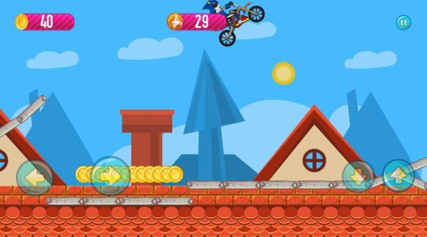 mengontrol sepeda Anda untuk naik menanjak dan menurun dan mencapai tujuan dalam waktu tertentu untuk membuka tingkat baru. GetBonus poin untuk membuat Kembali dan depan membalik. Mengumpulkan koin untuk membuka