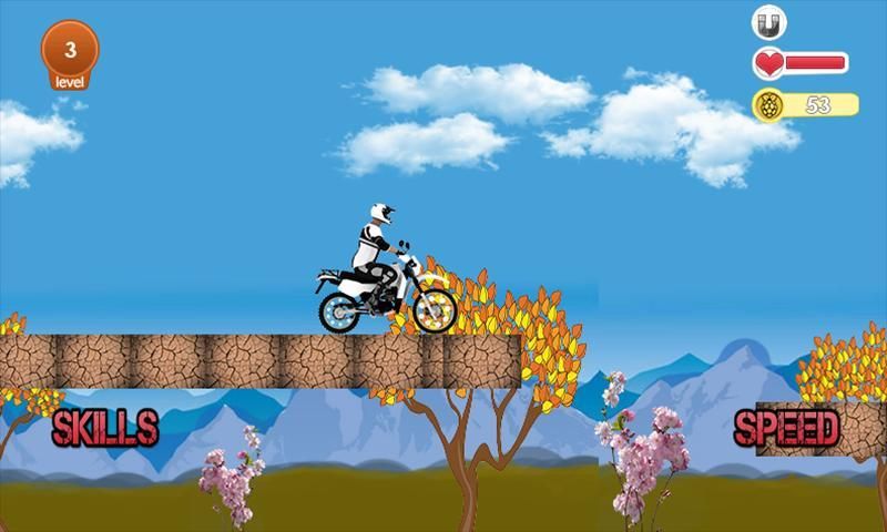 Let's bike and race with 3D feel and perform stunt on top of mountain.
