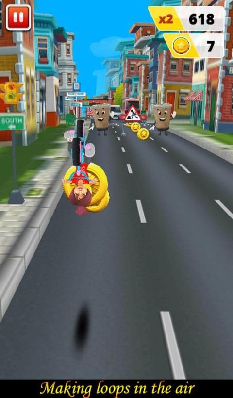 - Swipe to turn, jump and slide your bike to avoid obstacles, collect coins
