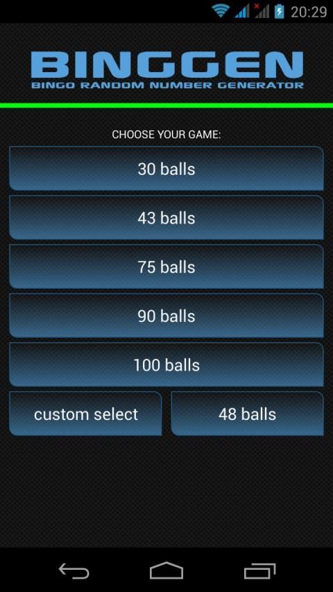 Application that generates random numbers for all Bingo game variations. Application can also be used in other situation where random number between 1 and maximum of 120 is needed.