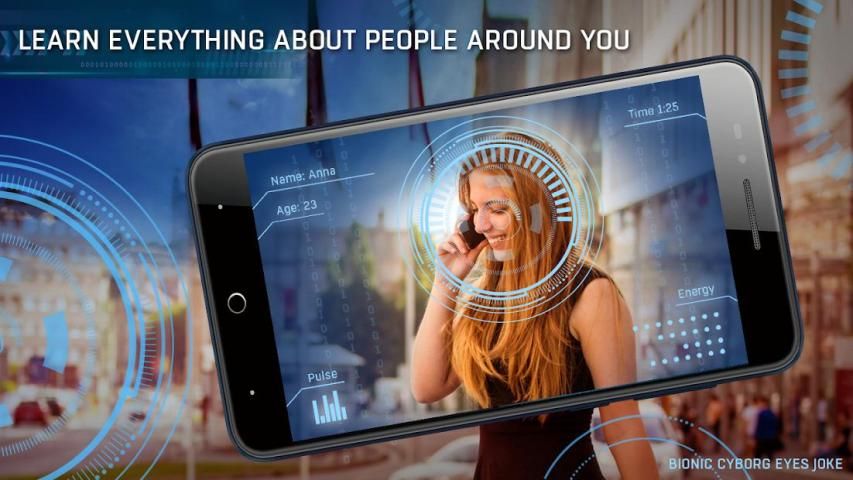 This is a simulation joke simulation application where you can watch through the camera with phone effects and see how the robots transformers. Includes the age of the face scanner - determine the age by face or age from the photo! It's like a thermal imager and a night vision, only you can learn all about the people around you. Determine the age and name on the face to know about people all like the way cyborgs do it. Spying on friends or walking down the street and find out what a cyborg robot is. For a more realistic effect, the camera is connected. Try it yourself and advise your friends!