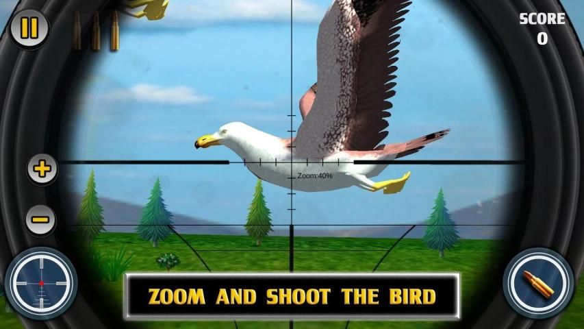 Berburu burung adalah shooting game kamu bisa menembak sebanyak mungkin burung, jika kamu merindukan untuk memukul burung kamu akan kehilangan satu kehidupan maksimum 3 kehidupan memiliki dalam permainan ini. kamu dapat dengan mudah bertujuan burung dengan menggunakan lensa zoom, mencoba untuk mengalahkan skor tinggi kamu dan menikmati berburu burung.