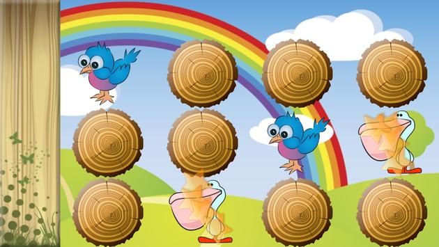 -Menyentuh layar dan mencoba untuk mencocokkan burung pasangan yang tersembunyi di bawah batang pohon, cari pasangan!
