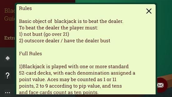 BlackJack Panduan Strategi ini dirancang untuk membantu Anda belajar dan berlatih strategi Blackjack, berdasarkan strategi dasar. Menyesuaikan aturan permainan dan mengoptimalkan peluang Anda untuk memenangkan menggunakan Real Time panduan, cepat dan sederhana!