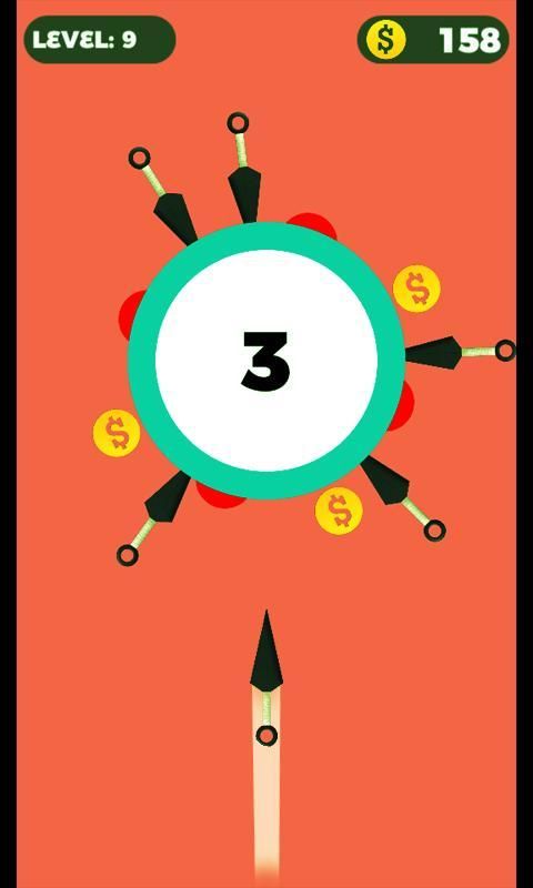 Hit permainan roda lingkaran, kesulitan permainan tergantung pada jumlah pisau dalam antrian, dan kecepatan rotasi ini dari berkelok-kelok lingkaran NiFe dasbor.
