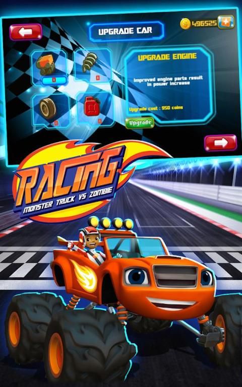 Pada Blaze Racing Rakasa, Anda mengendarai Mesin Blaze Racing Rakasa untuk menemukan jalan pulang ke rumah, di jalan memiliki banyak zombie, mendorong Blaze Machine untuk zombie, mengumpulkan uang di jalan untuk meng-upgrade Anda Blaze dan Mesin Rakasa.