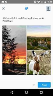 Menangkap momen dalam hari Anda yang membuat Anda tetap fokus pada positif. Anda lihat, kita semua memiliki kemampuan untuk rewire otak kita untuk berpikir positif. Kabar baiknya adalah bahwa dengan pelatihan, kita benar-benar bisa rewire jalur saraf yang mengatur emosi dan pikiran kita. Proses rewiring hanya itu, sebuah proses. Anda melanggar kebiasaan lama dan membuat yang baru ... BLISS harian 3 aplikasi memungkinkan semua orang kesempatan untuk mengubah pikiran mereka, rewiring otak mereka untuk mencari positif dalam kehidupan sehari-hari mereka.