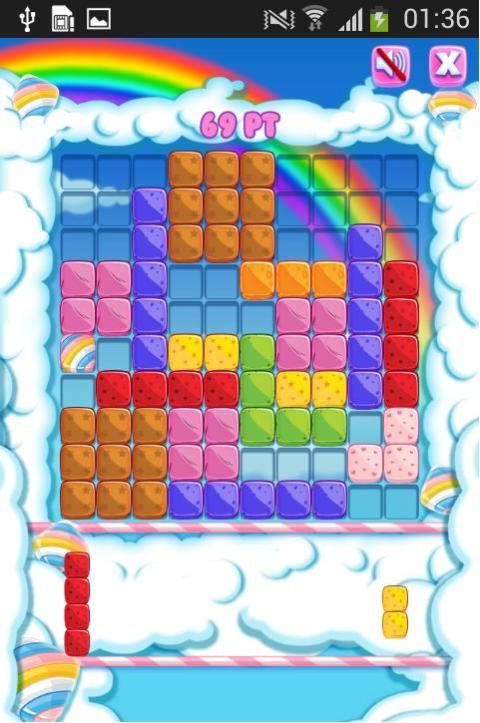 • Drag and drop blok untuk membuat garis lurus dan menghancurkan mereka.