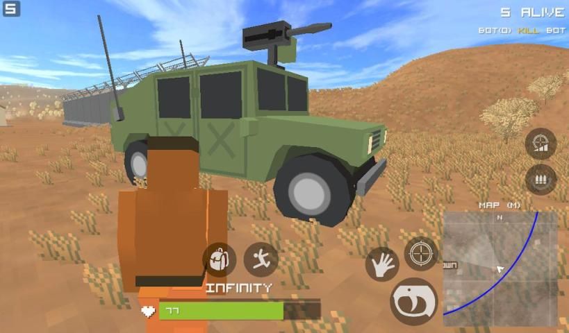 takes place in a cubic world! Compete against opponents on a map created to play this type of game(battle royale)Duration of the game less than 10 minutes