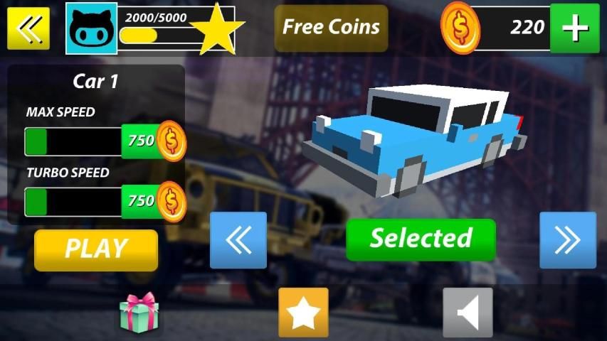 Drive on the block to world blocky cars, avoid oncoming traffic, collect coins and fuel, to buy the best cars and unlock new tracks!