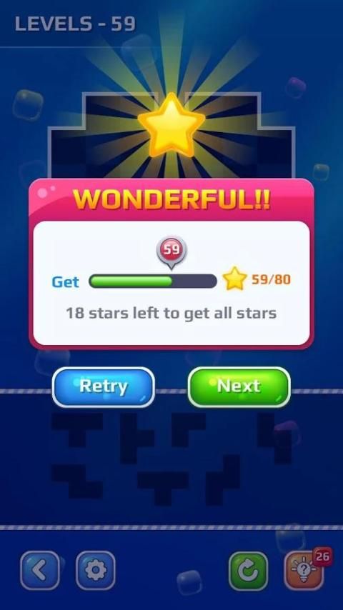 Pindahkan blok untuk mengisi lapangan dan mengumpulkan bintang / berlian untuk tingkat atas!