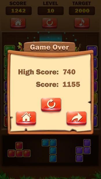 Semakin banyak Anda membersihkan, semakin tinggi skor yang akan Anda peroleh jika tidak ada ruang untuk blok yang diberikan di layar, permainan berakhir.