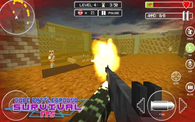 Dalam Cube Battleground Kelangsungan Hidup FPS, Anda memasuki dunia yang berbeda yang terdiri dari senjata mematikan termasuk Sniper Rifle, Shotgun, Pistol, dan AK47. Anda dapat pergi untuk menjelajahi hutan atau mengikuti jalan yang mengarah ke kota. Anda dapat mencapai sukses dalam permainan dengan bantuan berburu Sharpshooter. Grafis 3D dari kualitas unggul membantu dalam meningkatkan minat dari permainan. Ada unsur-unsur yang berbeda bagi mereka yang gemar kerajinan tambang jenis permainan dan mereka yang menikmati petualangan, berburu, dan kelangsungan hidup. Anda dapat mencari nilai yang tinggi atau pergi untuk menemukan semua bendera.
