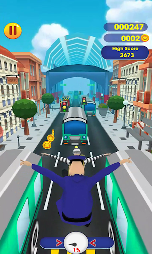 In this subway game you play as Bob so you can run from the police, and avoid all subway bus and truck and school bus, and also police car, you will have so many obstacles to avoid and save your self to not be arrested. Use your ninja-like skills to run fast in some tight roads and avoid detection. you have a great power-up to destroy anything in your way you just collect 100 coins.