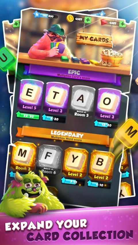 * Upgrade your letter cards to score more and more points in the battle and increase your chance of winning