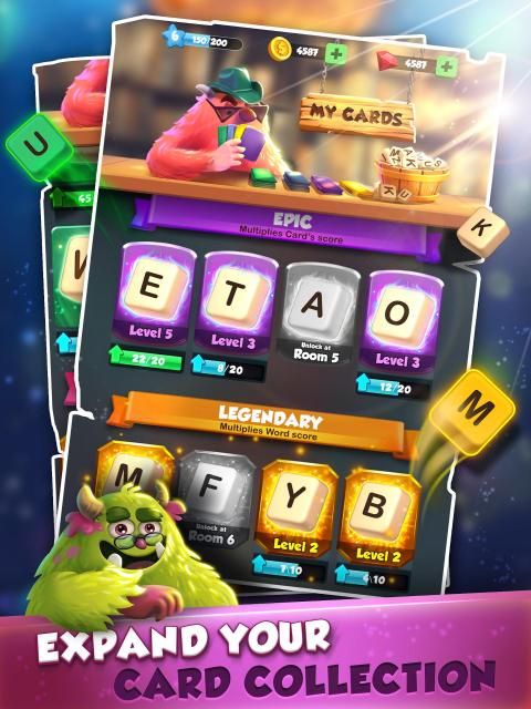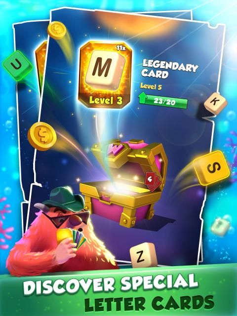 * Earn chests to unlock rewards, collect powerful new letter cards and upgrade existing ones to make better scores in the battle