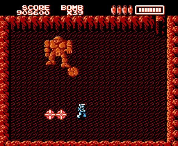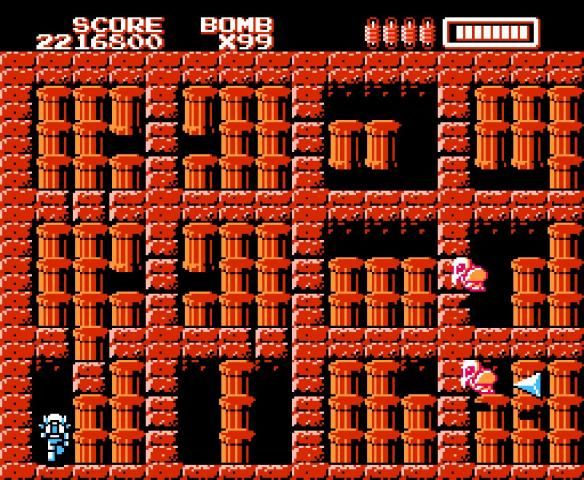 Bombom King can use bombs by pressing the B Button. Bombs cause massive amounts of damage to enemies, and destroy all "temporary" blocks within one space of them.