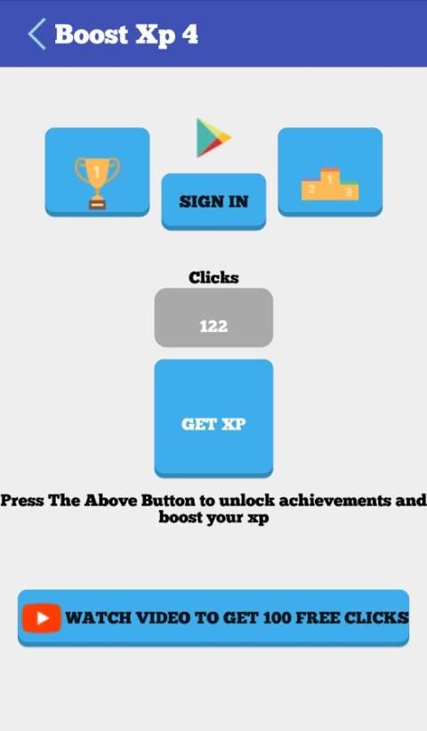 ● tingkat up Mudah xp - Anda dapat dengan mudah meningkatkan xp hanya dengan menekan "mendapatkan xp" tombol atau bahkan Anda dapat menonton video