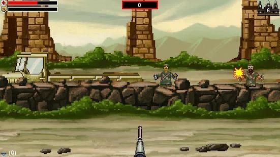 Menembak ikon kesehatan dan perisai untuk mendapatkan kesehatan dan menahan serangan musuh.