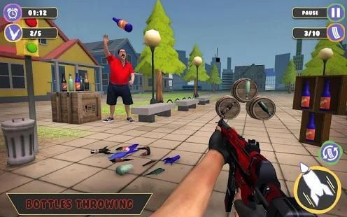 A man in red shirt throw the bottle up player need to shoot the bottle before it hit the ground. And its one type of multi-type levels of Bottle Flip Shooting Challenge.