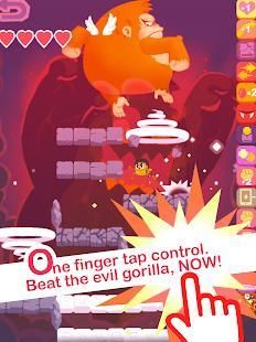 One finger tap control. Can the lovely chick beat the evil gorilla? Come and try, come back and tell us about your achievements. Get rewards and buffs to help you jump further. Beat the evil gorilla, now!