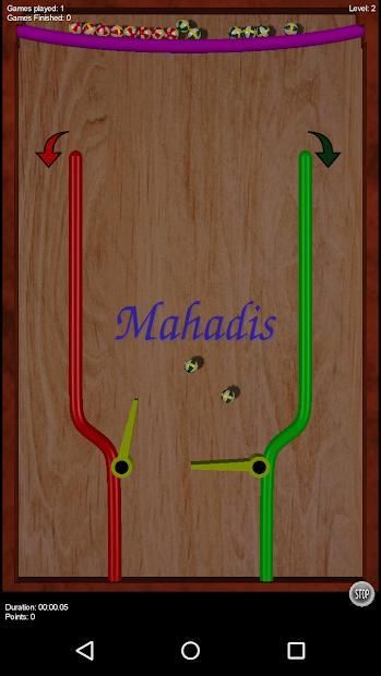 With 2 flippers (Yellow color) throw Red, Green balls in their respective area denoted by colored arrows