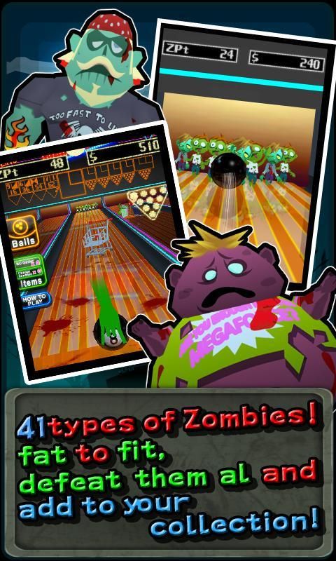 Zombie Bowling! adalah aksi permainan bowling baru yang memungkinkan Anda merobohkan zombie yang telah berbaris sebagai pin. Gunakan sentuhan dan swipe kontrol mudah untuk mengalami tindakan bowling realistis.