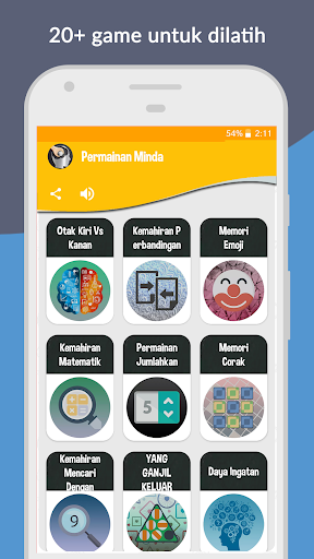 Ini memiliki 14 jenis permainan untuk memenuhi semua latihan pikiran Anda. Setiap game memiliki 15 level dan kompleksitas akan meningkat setiap levelnya.