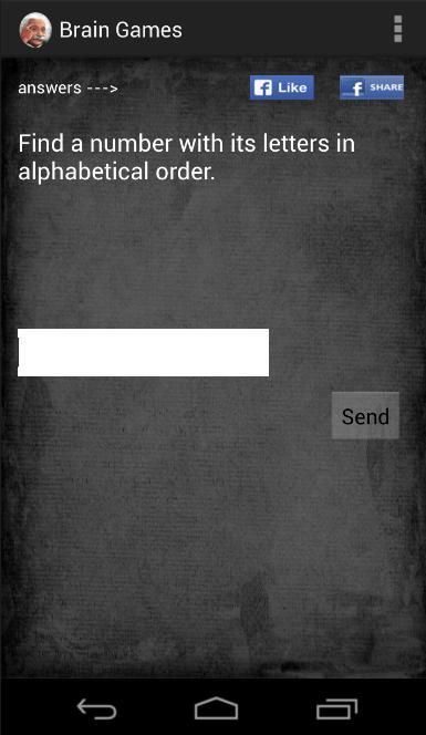 Jika Anda terjebak pada beberapa pertanyaan Anda dapat mencari jawaban di halaman facebook kami yang dapat diakses melalui tombol seperti dalam aplikasi. Tapi ingat, cara ini Anda akan kekurangan kepuasan memecahkan mereka sendiri.