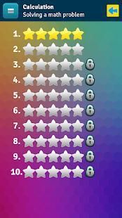 Ada 13 dalam semua, yang menguji menantang kemampuan Anda dalam matematika. Masing-masing dari 13 pertandingan otak dipecah menjadi sepuluh tes yang terpisah dari meningkatnya kesulitan, dan Anda tidak dapat maju ke tingkat kesulitan berikutnya sampai Anda selesai tes sebelumnya.