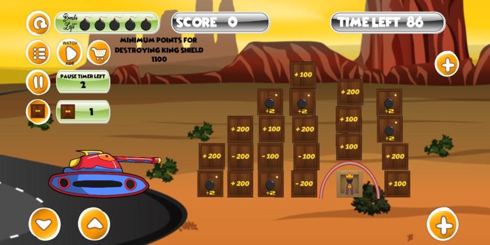 It’s a free addictive tank game / tank shooter game wherein the tank has to aim to shoot the boxes to gain points. This tank video game is a shooting game having shooting range, shooting target, shooting competition as the negative boxes lead to decrease points. The tank here is a shooter which shoot out bomb / cannon / cannonball / cannon ball. Player gets a cannon ball pool of cannon artillery which is limited and can be gained in higher levels by hitting cannon box. As we know shooting to thrill by canon fire / bomb launcher is fun. Along with this bomb game, you shall enjoy bomb sound, bomb explosion / bomb blast and also there is a bomb timer. There is timer for all levels and the player has to finish the game before the timer count / timer countdown / timer clock / stopwatch ends. In this timer game the timer set to pre-set time to add more adrenaline rush / excitement to the player. This tank war or tank fight with the boxes is really exciting. This tank game download online / online tank game is worth a try in the tank of world games as it will never disappoint you. Every level is a tank circuit for this tank 3D like game. Earn stars on level complete. The tanks aiming mechanism is awesome. There are exciting goodies to purchase from the store. Apply brains and do not let your tank trouble you. Tank destroyer destroys the king box to release him and win level. As minimum score is achieved the tank shield is disabled to release the king. You may watch ads to receive free freebies that help in clearing the levels, also you may purchase it from the cart. This is a brain using game / brainy app / brain game / brain games / brain puzzle / brain quiz game / brainy math / math game / math / concentration / concentration development for kids which may help develop strategy making skills as a part of brain development / brain test / brain activity / brain exercise / brain gym. This is a strategy game but not like usual strategy games / strategy building games for android and other platforms. Here strategy implementation and strategy management is a key to clear levels. Strategy planning / Strategy and plan this strategy war game cautiously. Key to plan for this strategy training / strategy teaching is given in the strategy levels in the beginning of the game. This game is strategy design to cater the strategy kingdom games.