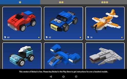 Bricks! menyediakan baru, imajinatif, mengagumkan dan pendidikan model baru anak dapat membangun dengan batu bata yang telah mereka miliki. Melalui diputar, presentasi 3D zoomable, aplikasi mengambil anak-anak melalui proses membangun masing-masing model langkah demi langkah. Hal ini juga memberikan daftar semua bagian yang masuk ke model, sehingga Anda dapat memutuskan apakah Anda memiliki semua batu bata yang diperlukan terlebih dahulu (meskipun eksperimen dengan batu bata lainnya selalu menyenangkan!)