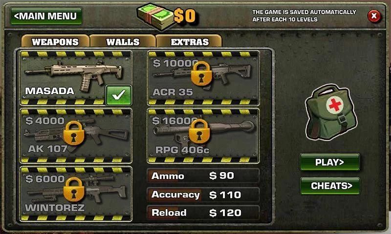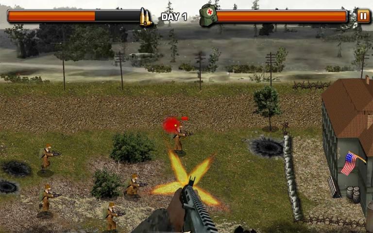 Camp dan berkik tentara musuh karena biaya dasar Anda. Setiap membunuh mendapatkan uang tunai yang Anda yang dapat Anda gunakan untuk meng-upgrade senjata Anda, memanggil dukungan, dan memperbaiki dasar. Anda akan berhadapan melawan tentara membawa granat, senjata otomatis, bahkan truk dan tangki dilengkapi dengan banyak daya tembak. Membangun pagar, menambah tentara ke dasar Anda, melempar granat dan memanggil serangan udara. Tahan tanah Anda pada setiap dasar untuk 10 hari dan Anda akan mendapatkan kesempatan untuk pindah ke dasar berikutnya. Menunda musuh dan menyimpan semua basis Anda dan Anda akan menjadi pahlawan nasional!