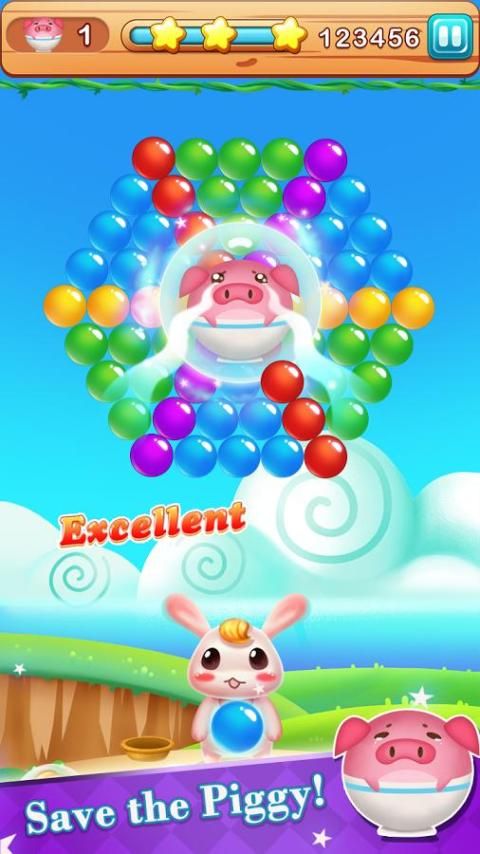 Dalam Piggy Penyelamatan Mode, menembak jatuh semua gelembung di sekitar Piggy!