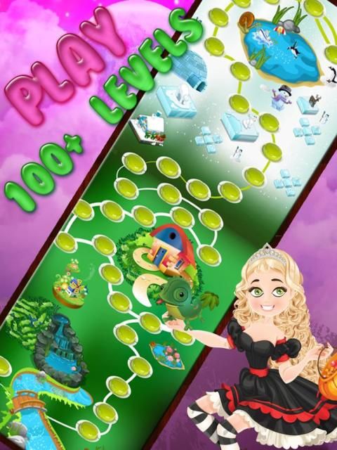 • Wonderful Kingdome Story.Explore the Candy map world with beautiful graphics and enchanting music