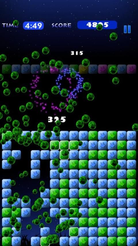 Sentuh dua atau lebih blok berdekatan dengan pop mereka, blok akan istirahat dan gelembung bagus dilepaskan, dan Anda mendapatkan nilai