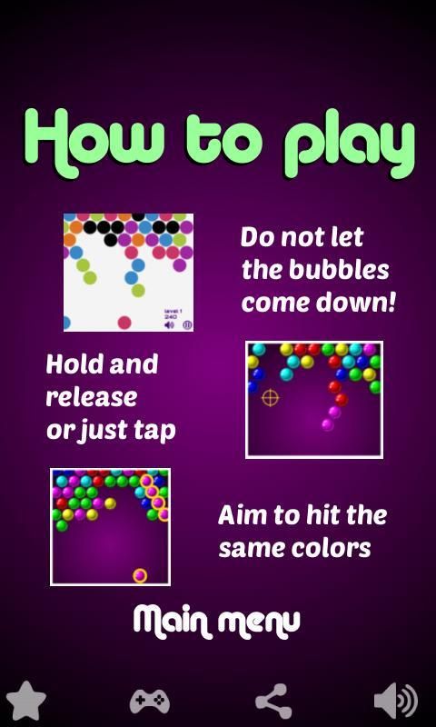 Jangan biarkan gelembung turun! Menembak mereka bertujuan untuk warna yang sama.