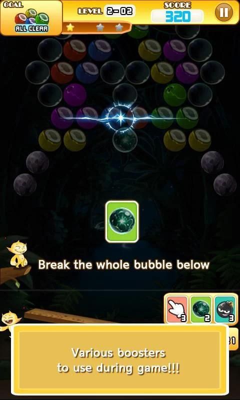 Bubble Shooter Monyet memiliki banyak jenis penguat yang mudah untuk membersihkan.
