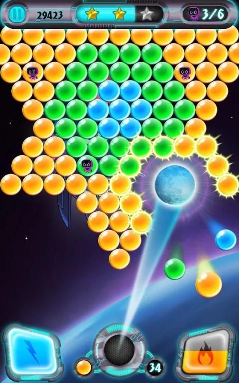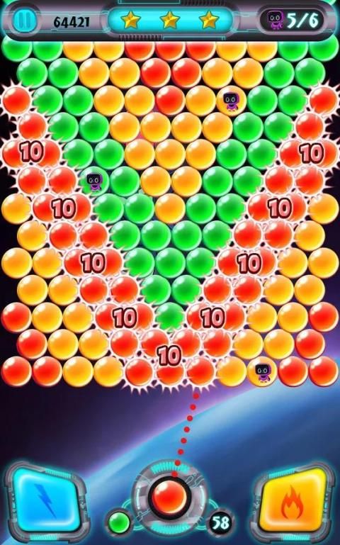 * Fireball - pop 7 gelembung berturut-turut untuk mendapatkan bola api kosmik yang akan membakar gelembung di jalan.