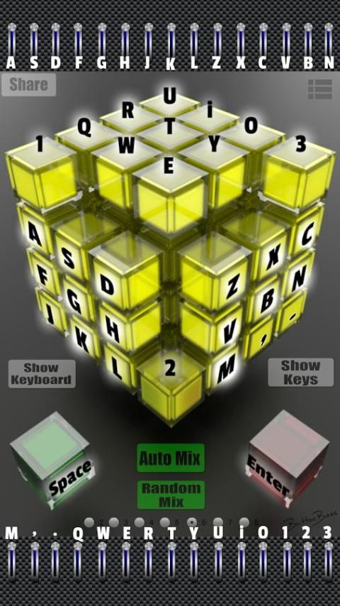 Saya termasuk fungsi kontrol Keyboard dalam satu ini! Cukup klik tombol acara keyboard dan Anda dapat menggunakan keyboard androids Anda untuk mengontrol kubus.