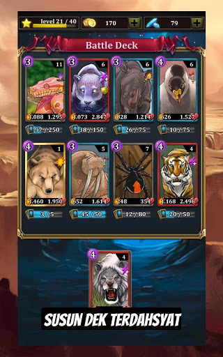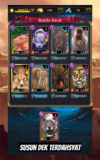 * Kartu hewan umum, langka, epik, dan legendaris dengan banyak tingkatan level