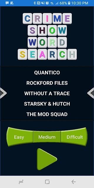 Enjoy this collection of Crime TV Show themed word search puzzles. With 38 levels and over 300 words to search, you will be sure to be entertained for hours.