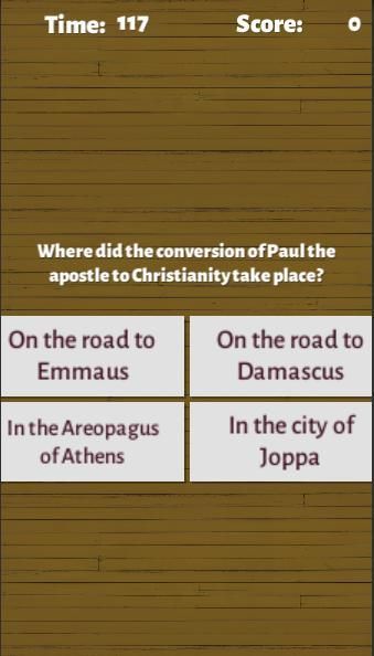 A Trivia game to test your knowledge on the bible as well learn, while having fun.