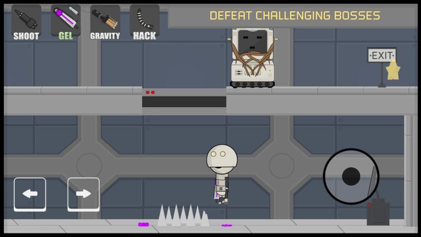 You play as a robot in the far future. Your goal is to clear a series of challenging platform levels, solve physics based puzzles and defeat powerful bosses in order to reach the final boss. Hack, avoid or destroy your enemies. It's your choice!