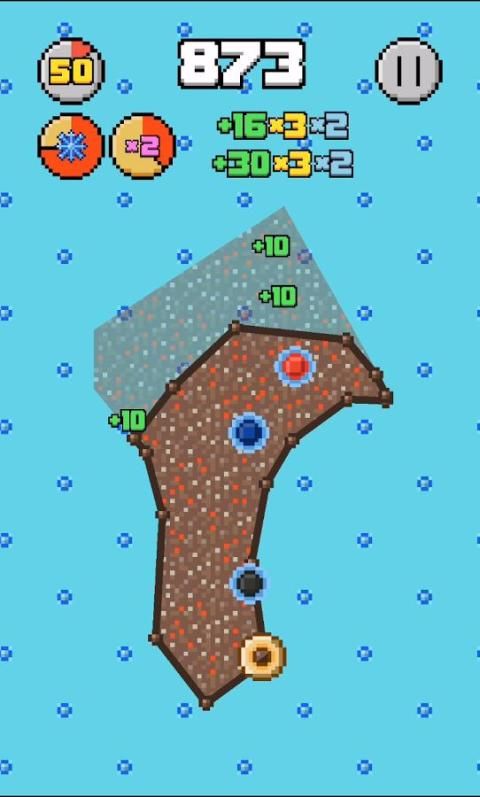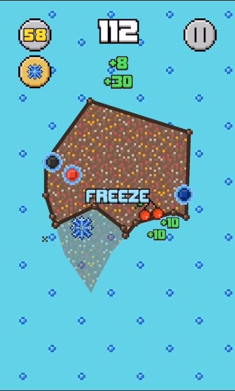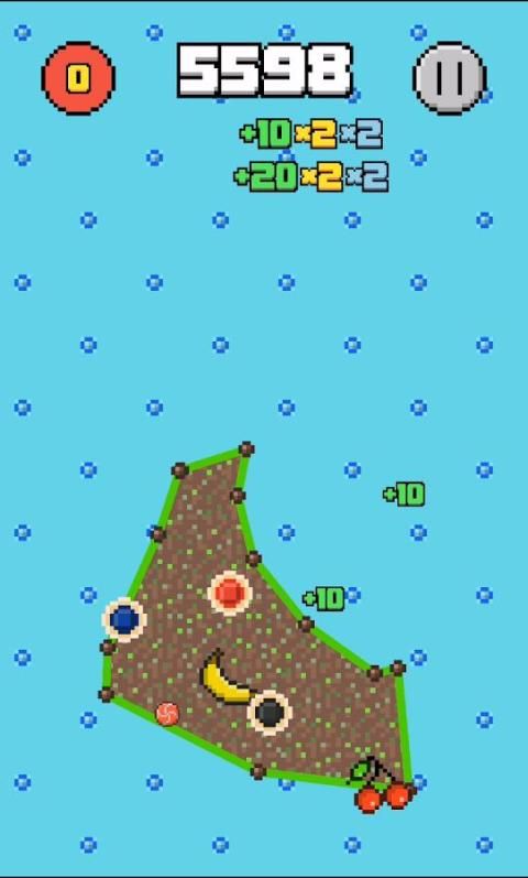 * Kumpulkan buah-buahan dan power up yang ada di kue dengan mengiris wilayah mereka berada di.