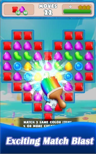 - Cocokkan 3 candys, yang warnanya sama untuk menghancurkan blok, apa saja dan dapatkan skor starand.