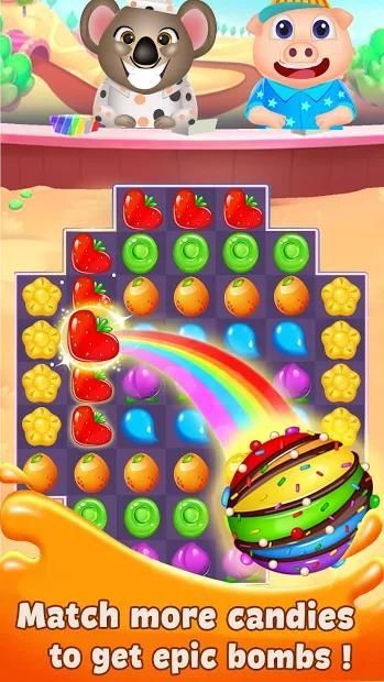 - Matching lebih dari 3 jeli akan menciptakan bonus kekuatan khusus dan combo yang akan semua gummies dalam satu langkah